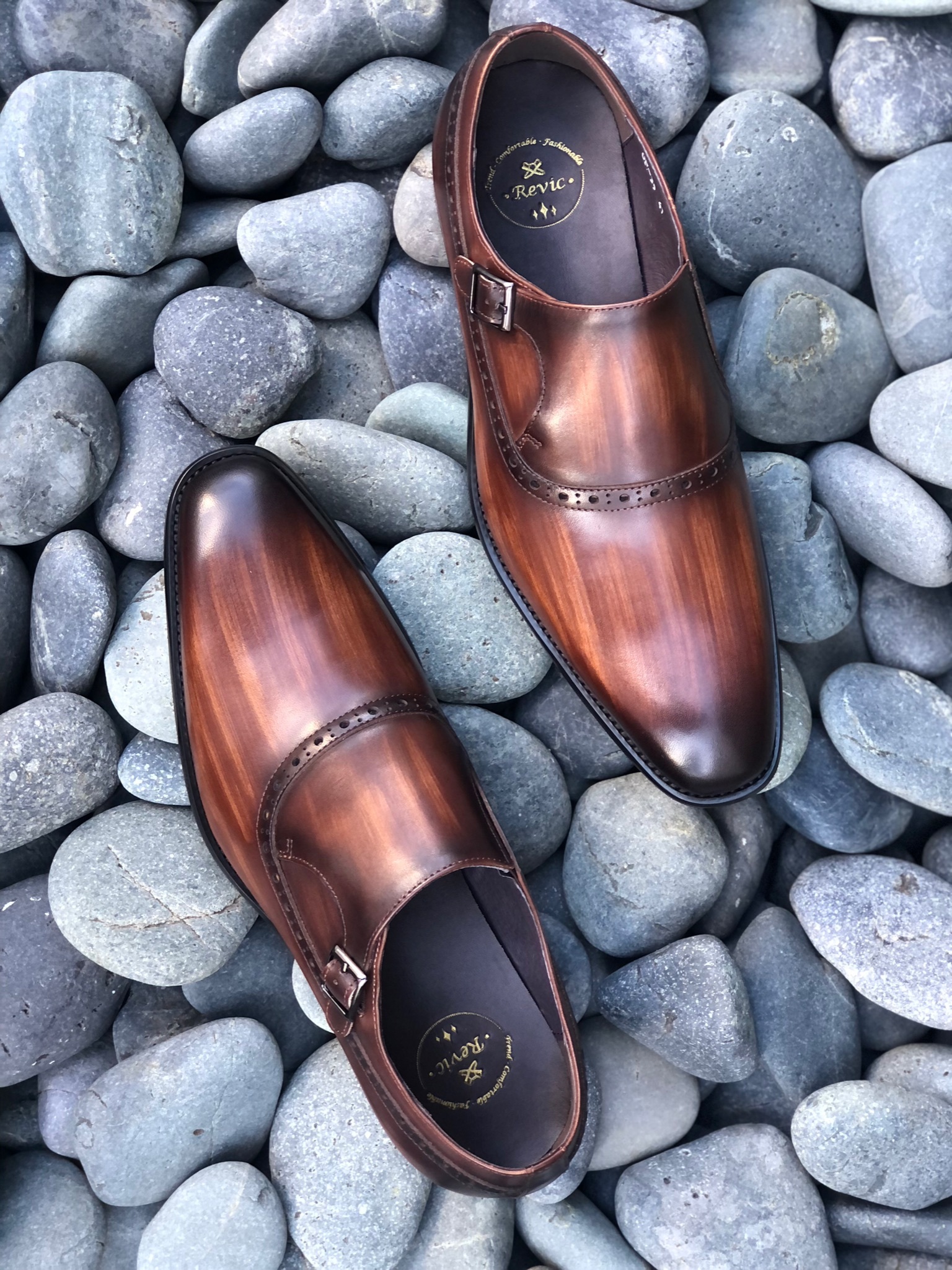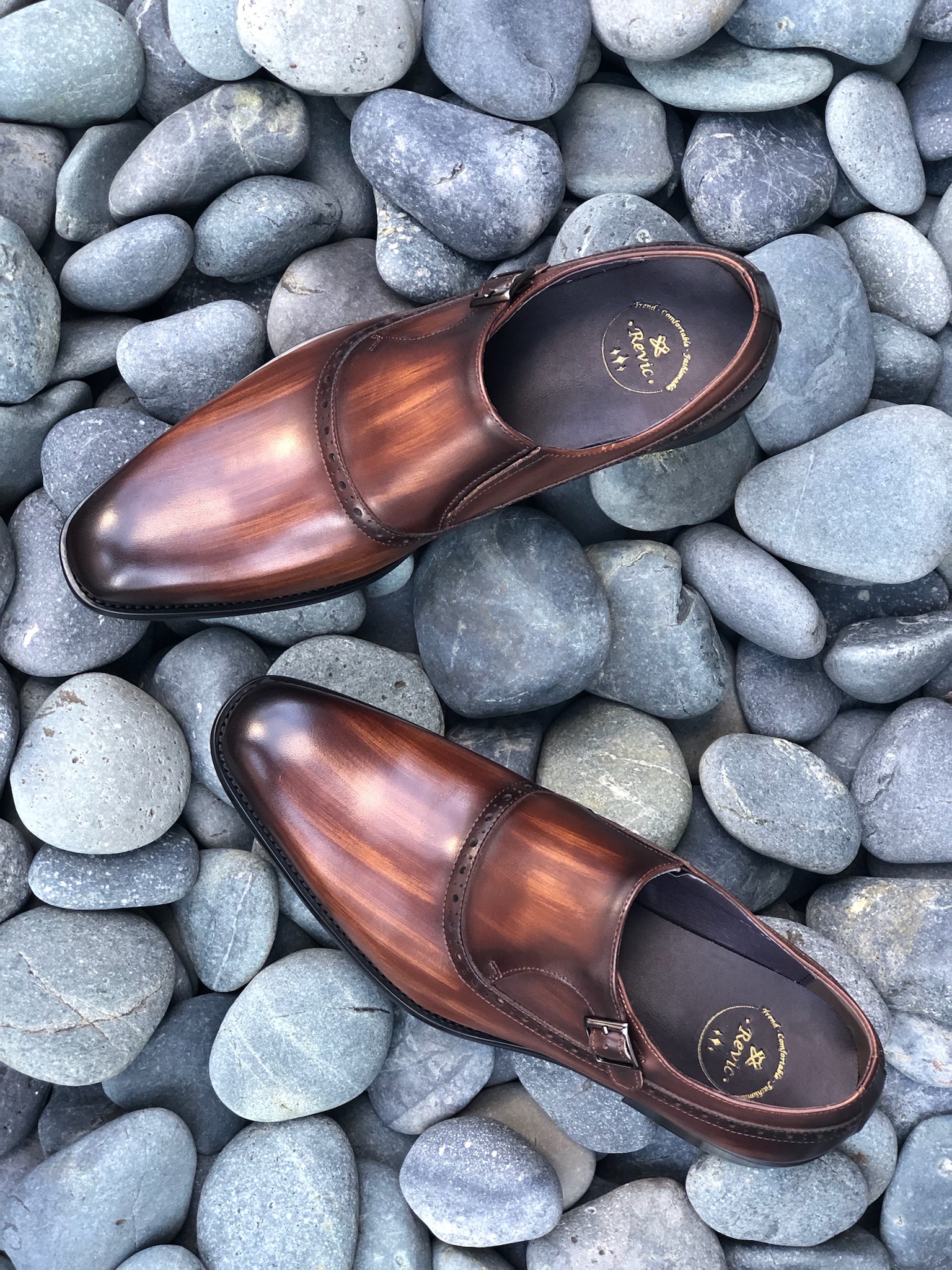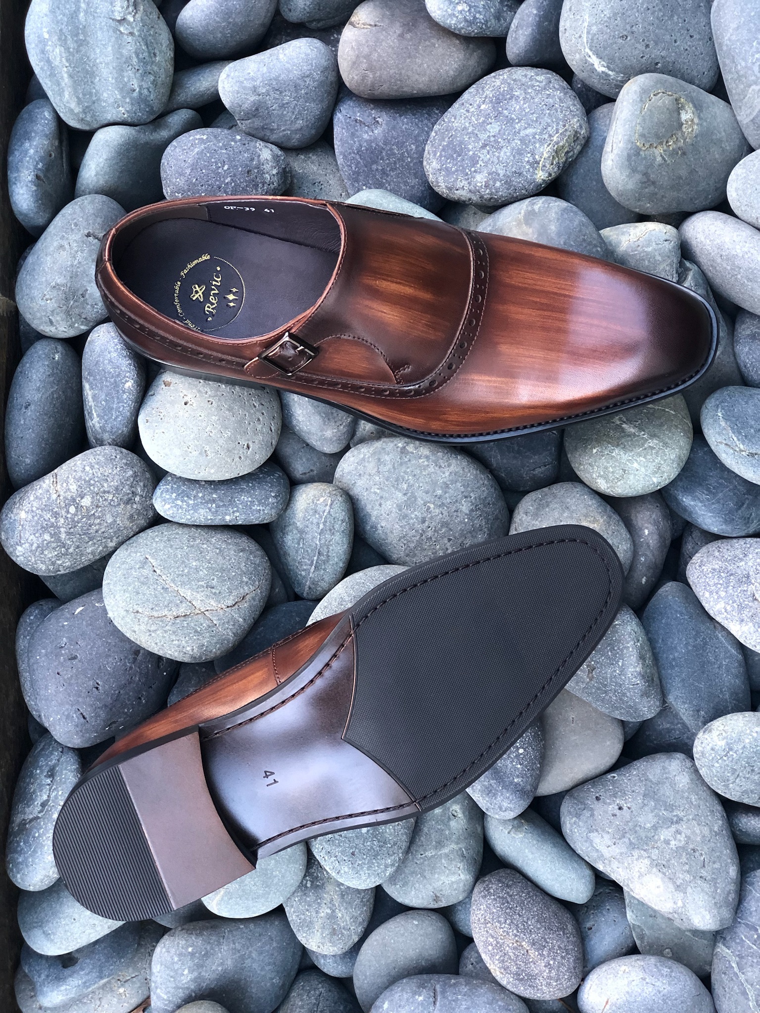 Revic 男裝皮鞋 | OF-39 | 啡色素面單扣皮鞋