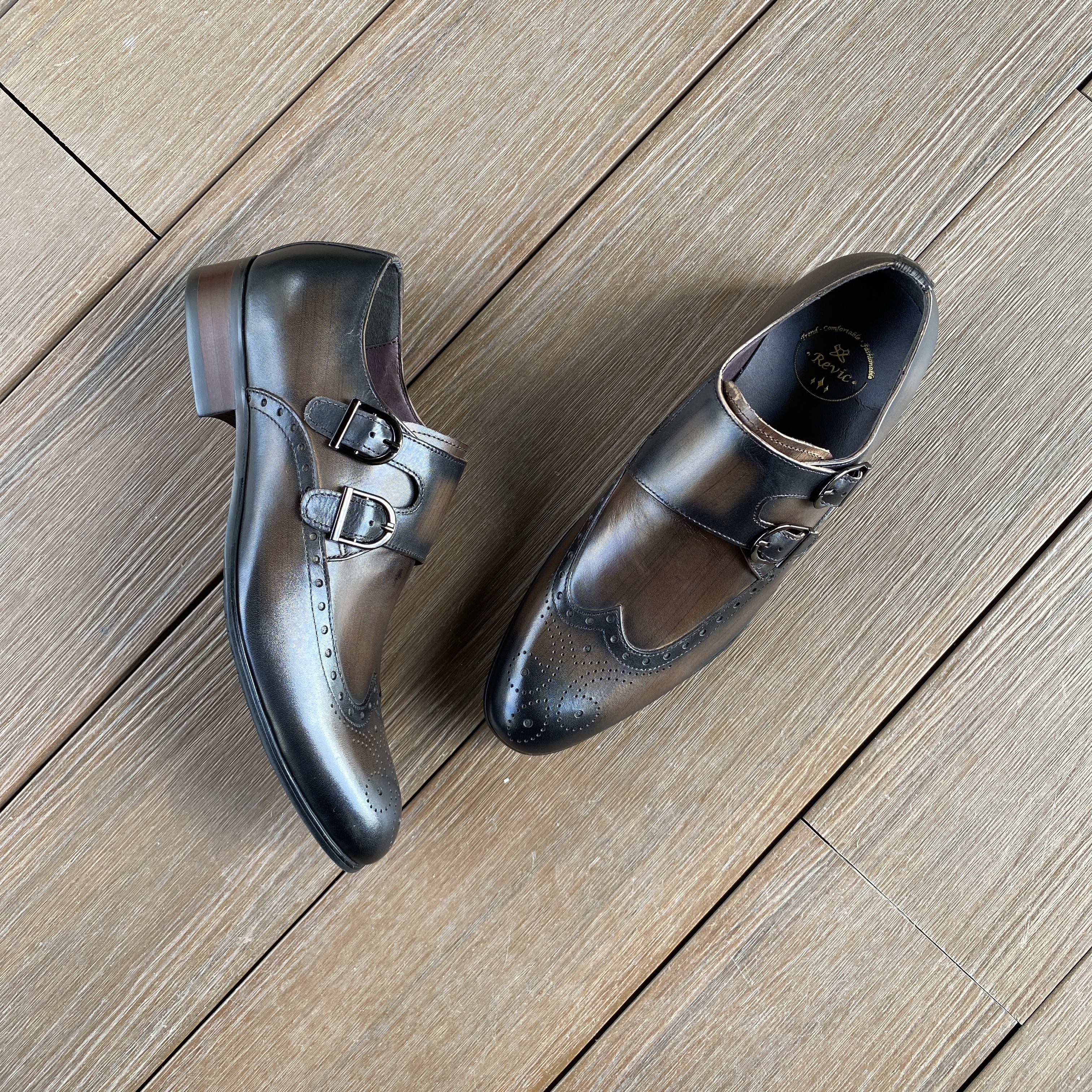 Revic | 深啡色翼紋雙扣僧侶鞋 | 採用優雅的鞋頭和雙鞋扣設計,是傳統綁帶皮鞋的時尚替代品,簡約俐落,輕鬆展現紳士品味。